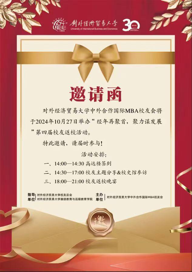 中外合作国际MBA校友会第四届校友返校活动邀请函